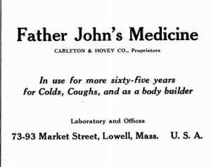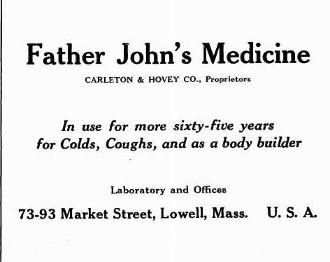 By 1922, his business had closed and the location then housed Carleton & Hovey Medicine, which sold the famous Father John’s Medicine.
