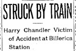 And, while digging near the flagpole in the yard, a few years later, I came across “CHAN” and “1944” etched into the concrete at its base.  A search of earlier newspaper records revealed that Grace’s father, Harry Chandler, had been the station agent of the now-defunct South Lowell station.  Being quite comfortable with trains, Harry had one day alighted from the train, before it had completely stopped, and was struck by another oncoming train.  All of this happened in the woods, directly behind the house.