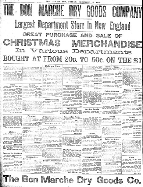 A Lowell Sun advertisement from December 1898