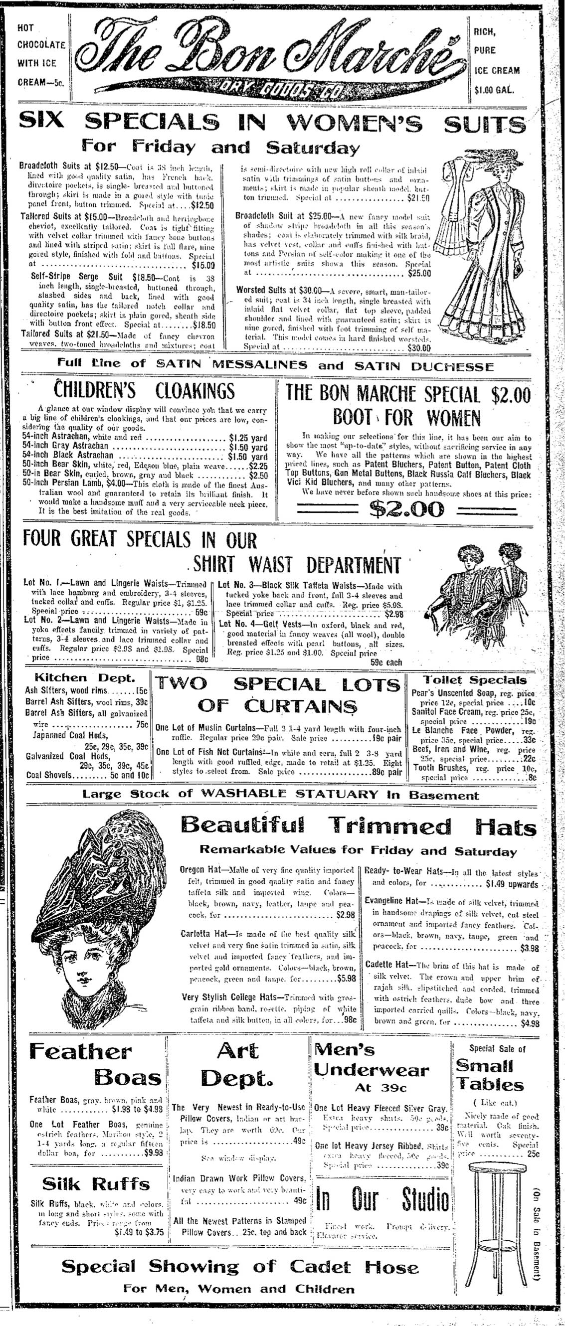 An advertisement for The Bon Marche, 1908