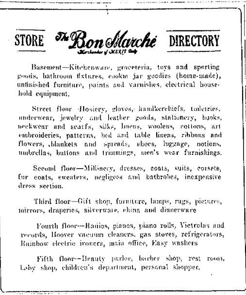 Bon Marché Store Directory from 1928