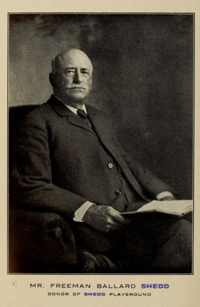 “Fourth:  That I shall have the right to erect, subject to the approval of the park commission, a suitable gateway and entrance, with a tablet or tablets thereon with the following transcription:  “Shedd Playground.  A gift to the City of Lowell by Freeman Ballard Shedd, A.D. 1910.”