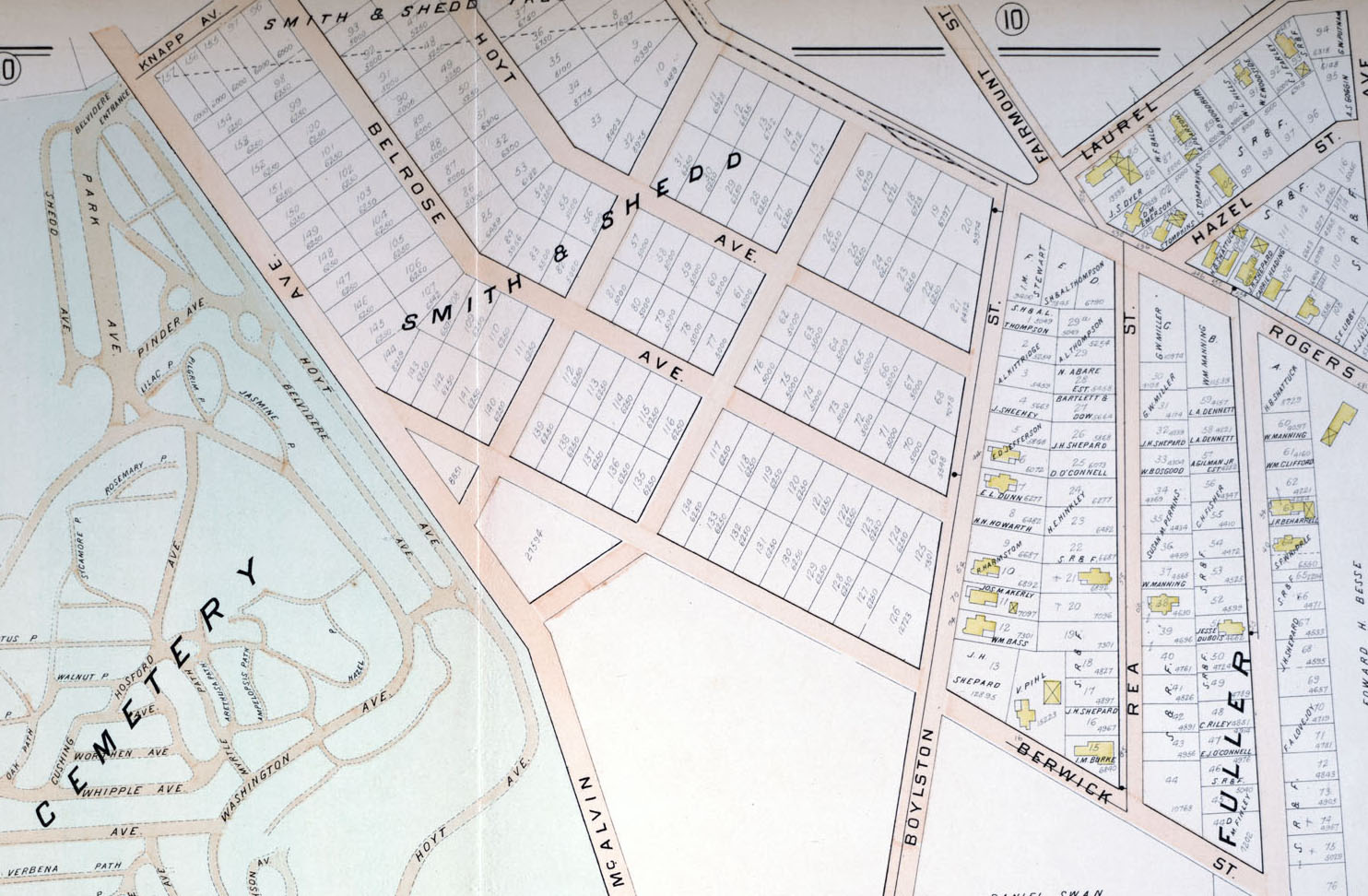 An 1896 plan showed a subdivision consisting of Hoyt, Belrose, and McAlvin Avenues traversing the core of what later became park grounds.  (Source:  1896 Lowell City Atlas)