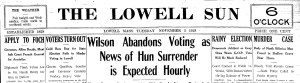 Front Page Headlines – Lowell Sun – November 5, 1918