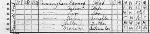 The Cunningham Family, as shown in the 1920 census. Their youngest daughter Pauline had not yet been born.