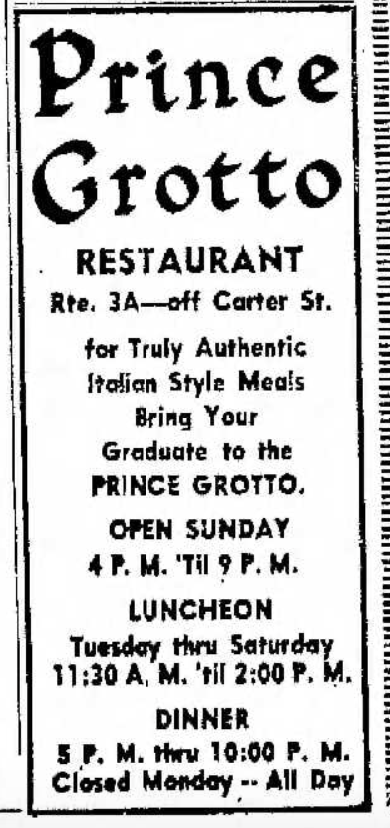 Prince Grotto Ad (Prince Spaghetti Restaurant) Lowell