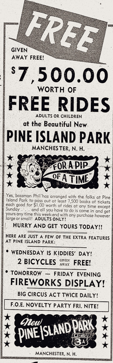 Pine Island had its share of misfortunes over the years. New Hampshire’s first airship took flight at Pine Island Park in 1910 only to crash into one of the park’s roller coasters minutes later. Six years after, a man was stabbed and killed near the park’s entrance. Then, several people drowned in the park’s pond in the 1910s, 20s, and 30s.
